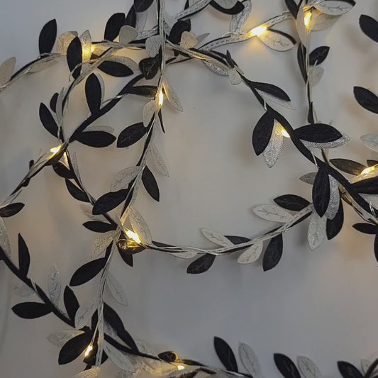 Black & Silver Leaf Fairy Lights