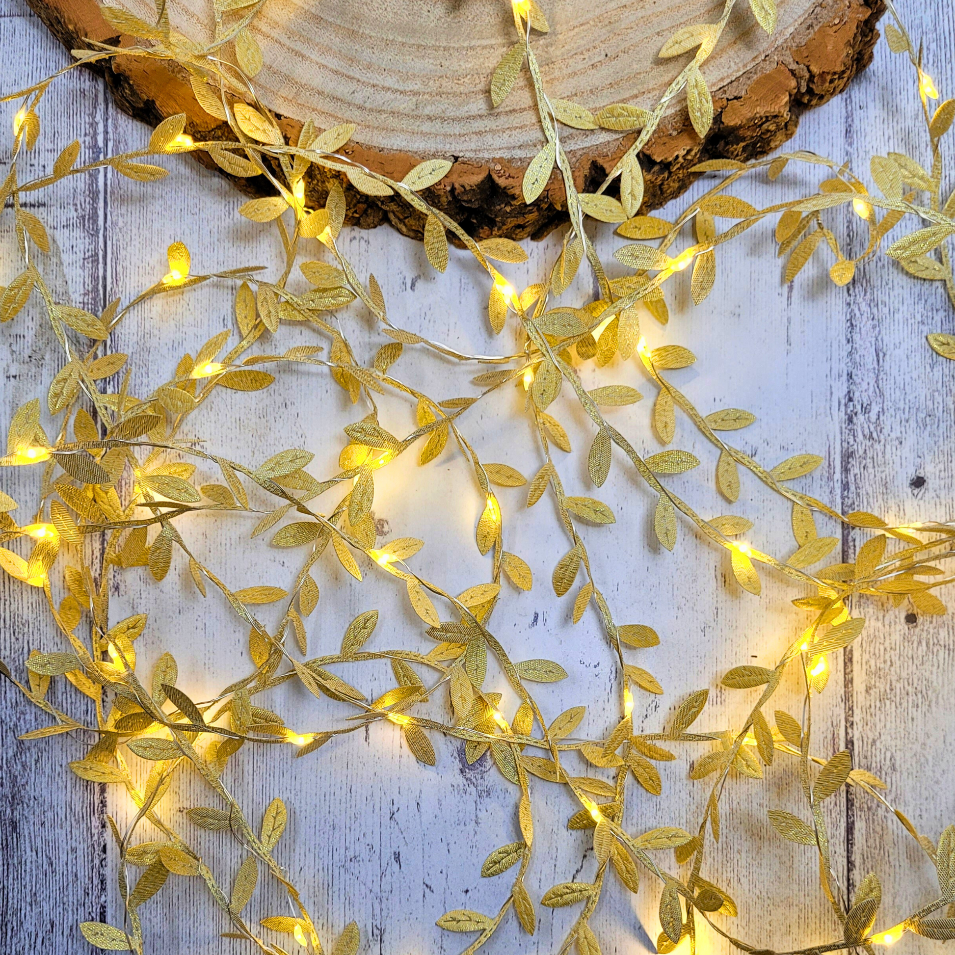 ✨ This gold leaf fairy light garland with warm white mini LEDs is perfect for your home, wedding or party decor.