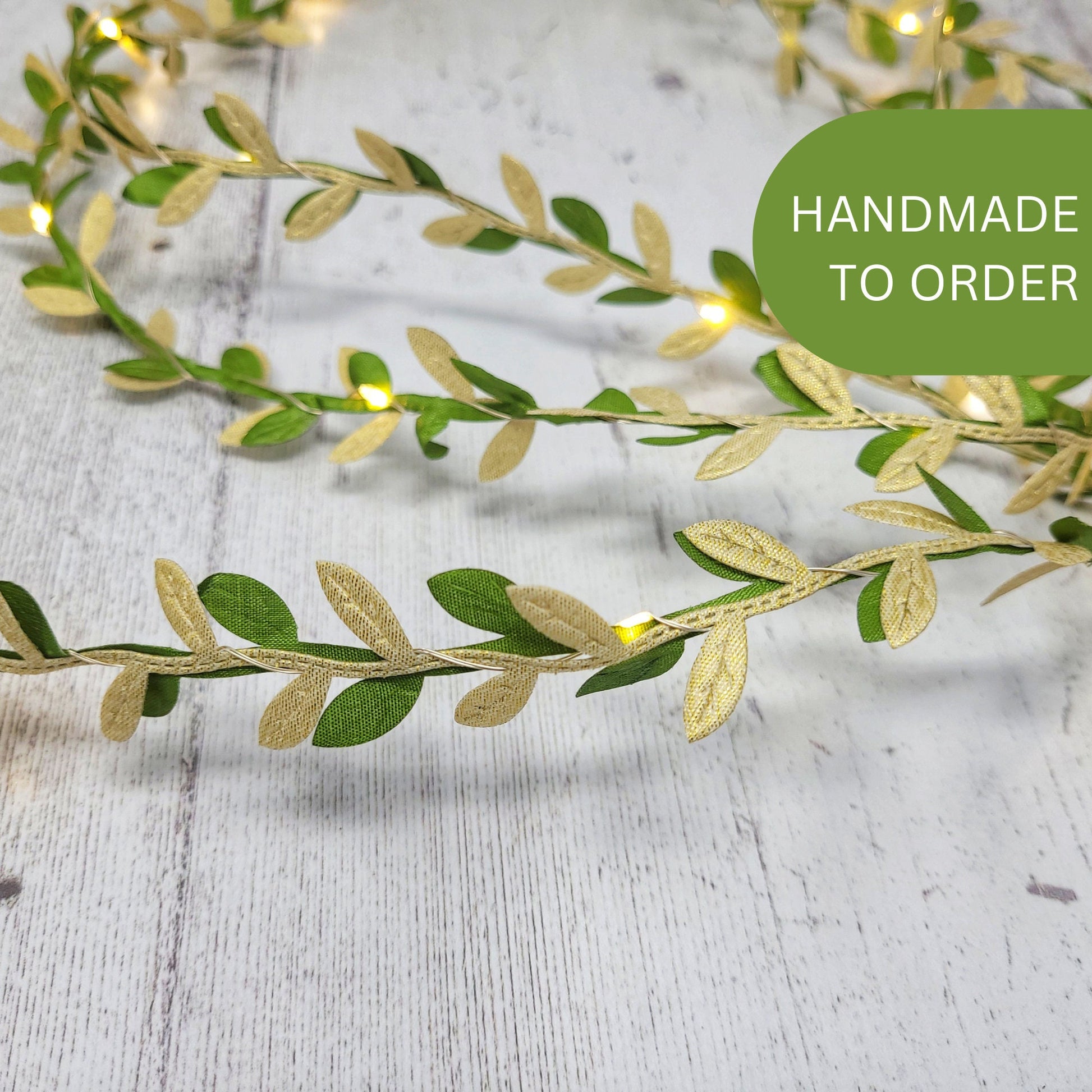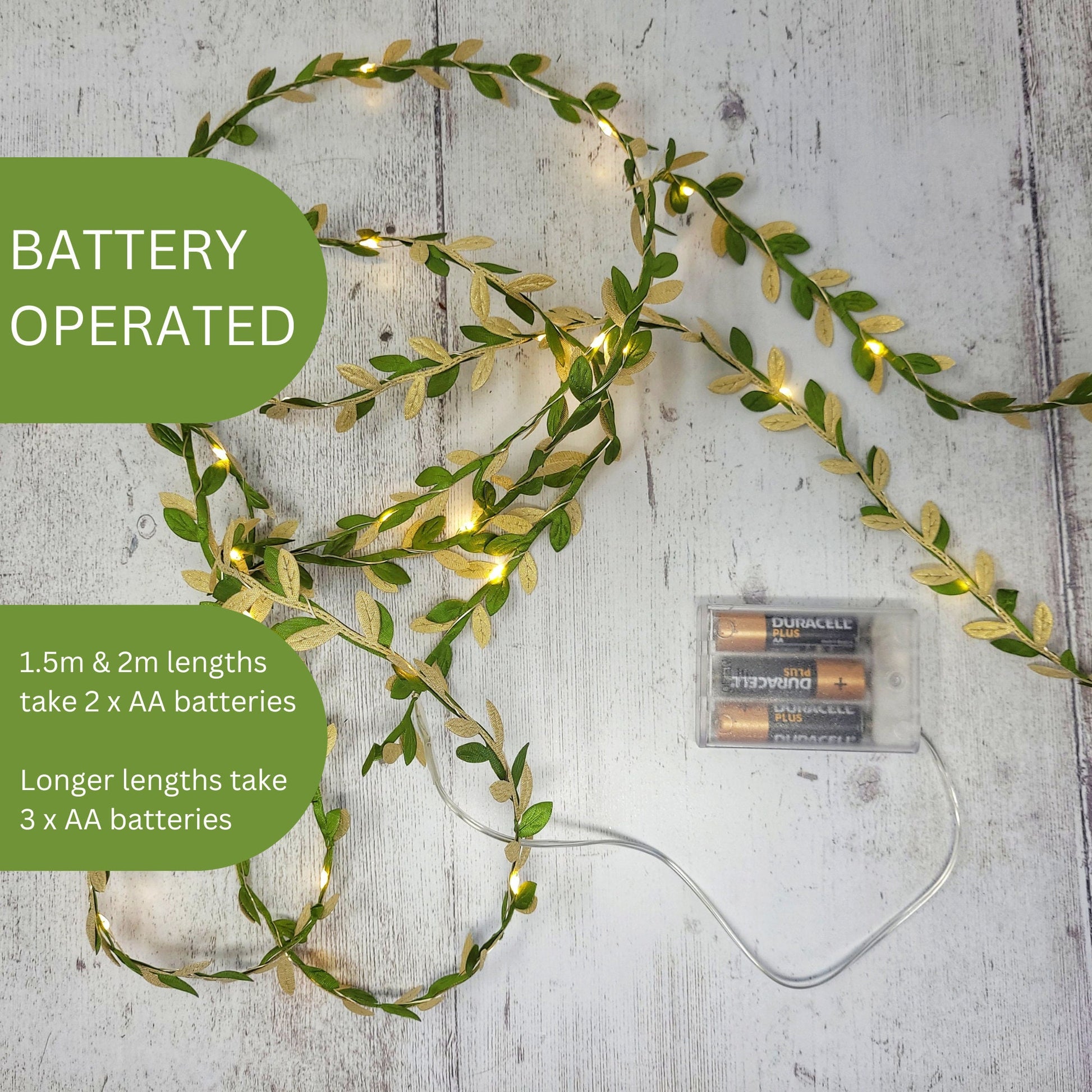 🌿 This green & gold leaf fairy light garland with warm white mini LEDs is perfect for your home, wedding or event decor.