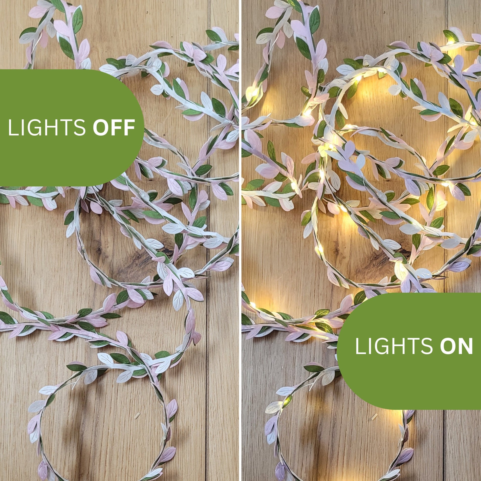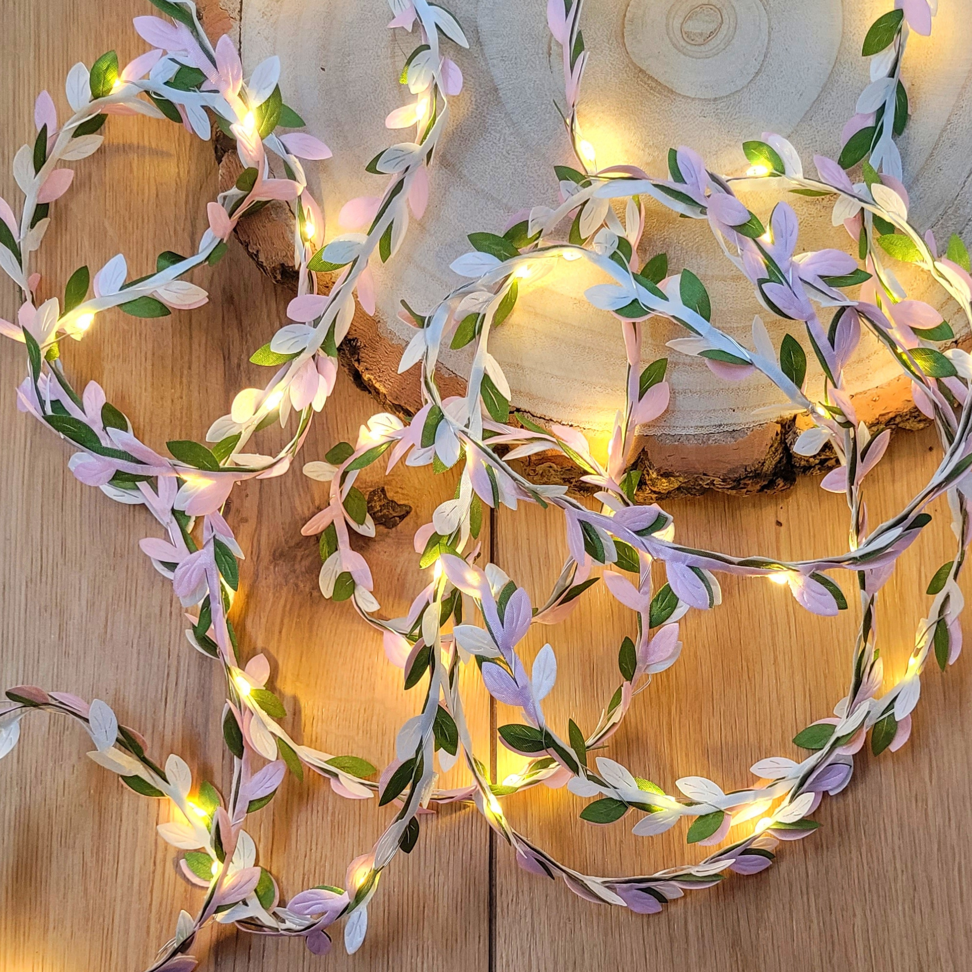Pale Pink, White & Green Leaf Fairy Lights