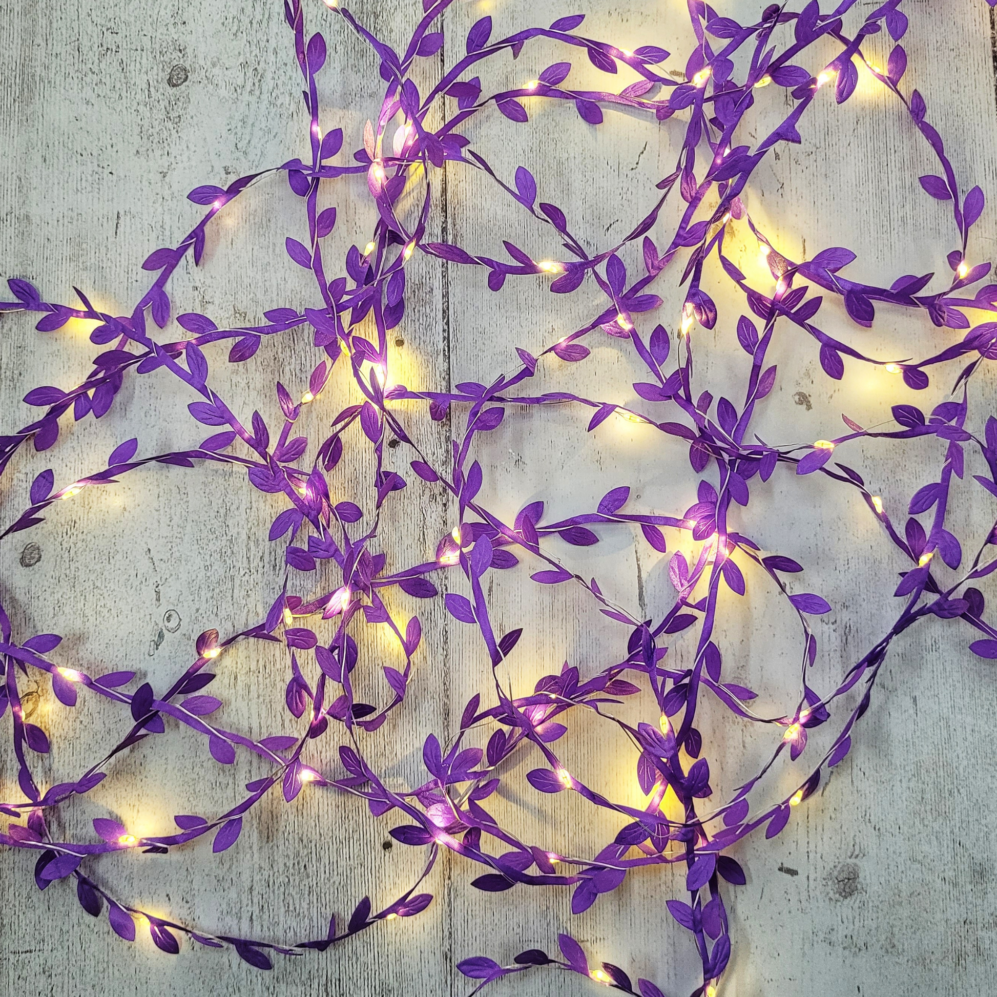 💜 This battery operated purple leaf fairy light garland with warm white mini LEDs is perfect for your home, wedding or event decor.