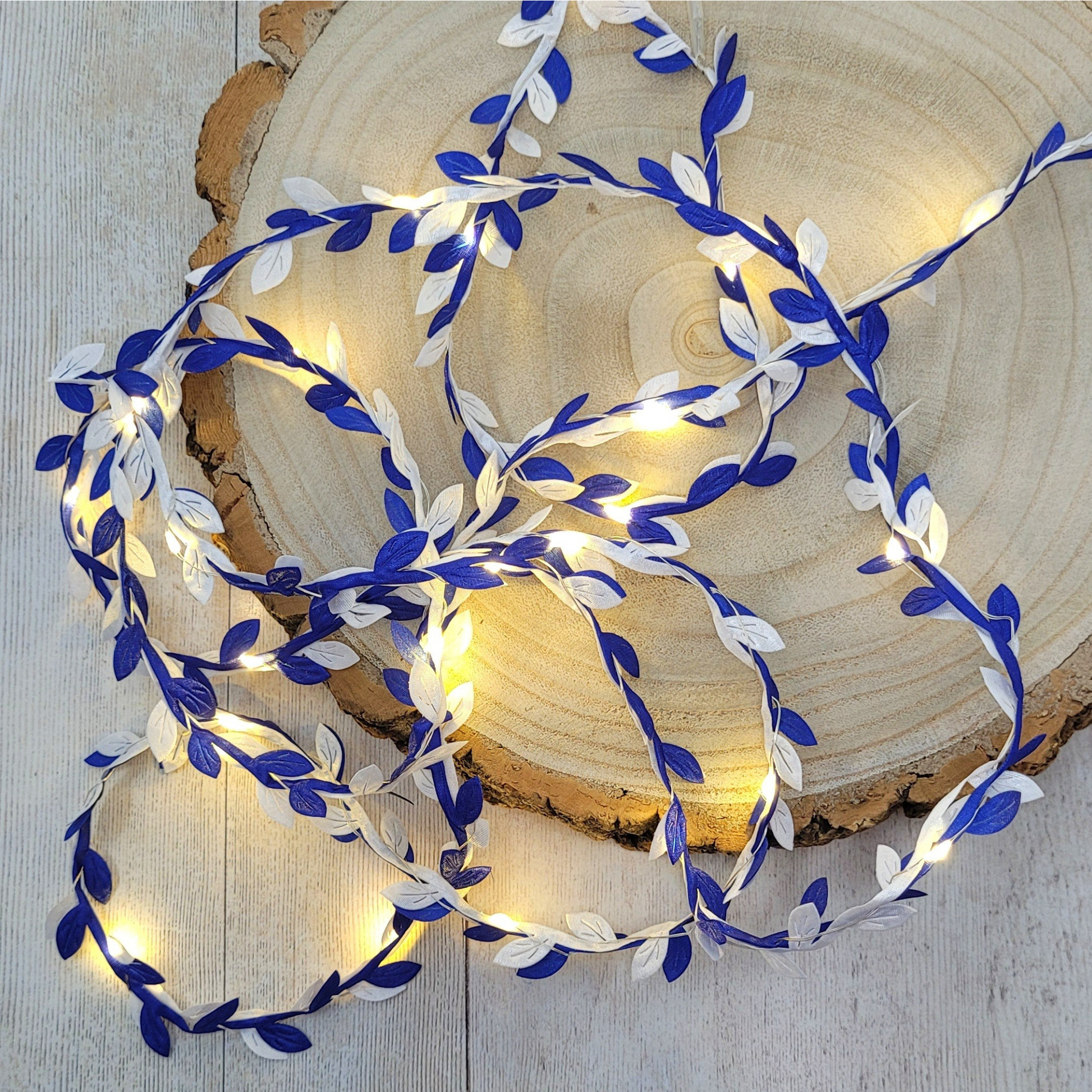 🌿 This blue & white leaf fairy light garland with warm white mini LEDs is perfect for your home, wedding or event decor.